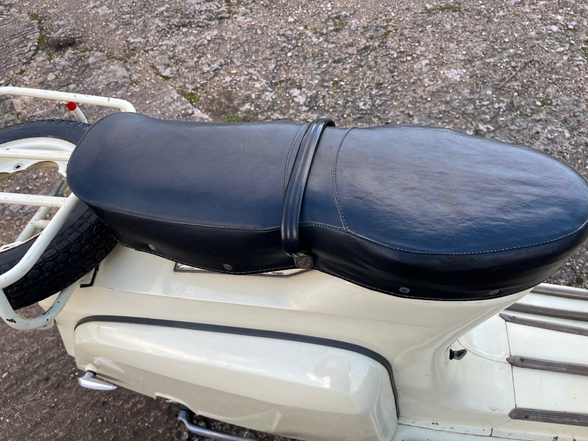 There is a growing fan club for the J series Lambretta and I guess rightly so. The various models began in 1964 and this Cento 100 was produced late 1965 and sold in February 1966 - a mere sixty years ago now! So surely a one owner low mileage original Cento with less than 9,000 on the clock must be worth a fortune? Seemingly not. I love this little scooter and I am sure you will too. Loads of history ( in a big well organised folder ) takes the machine and it's owner from 1966 to 1976 when it seems GAL 57D was parked away in dry storage. Shoot to 2019 and the story continues with a mechanical overhaul and a feature in Scootering magazine. The scooter now starts easily and works as it should do. Not the fastest thing on two wheels it oozes charm from every corner and tiny details keep appearing as you look around it's timely features. All in all a great package.