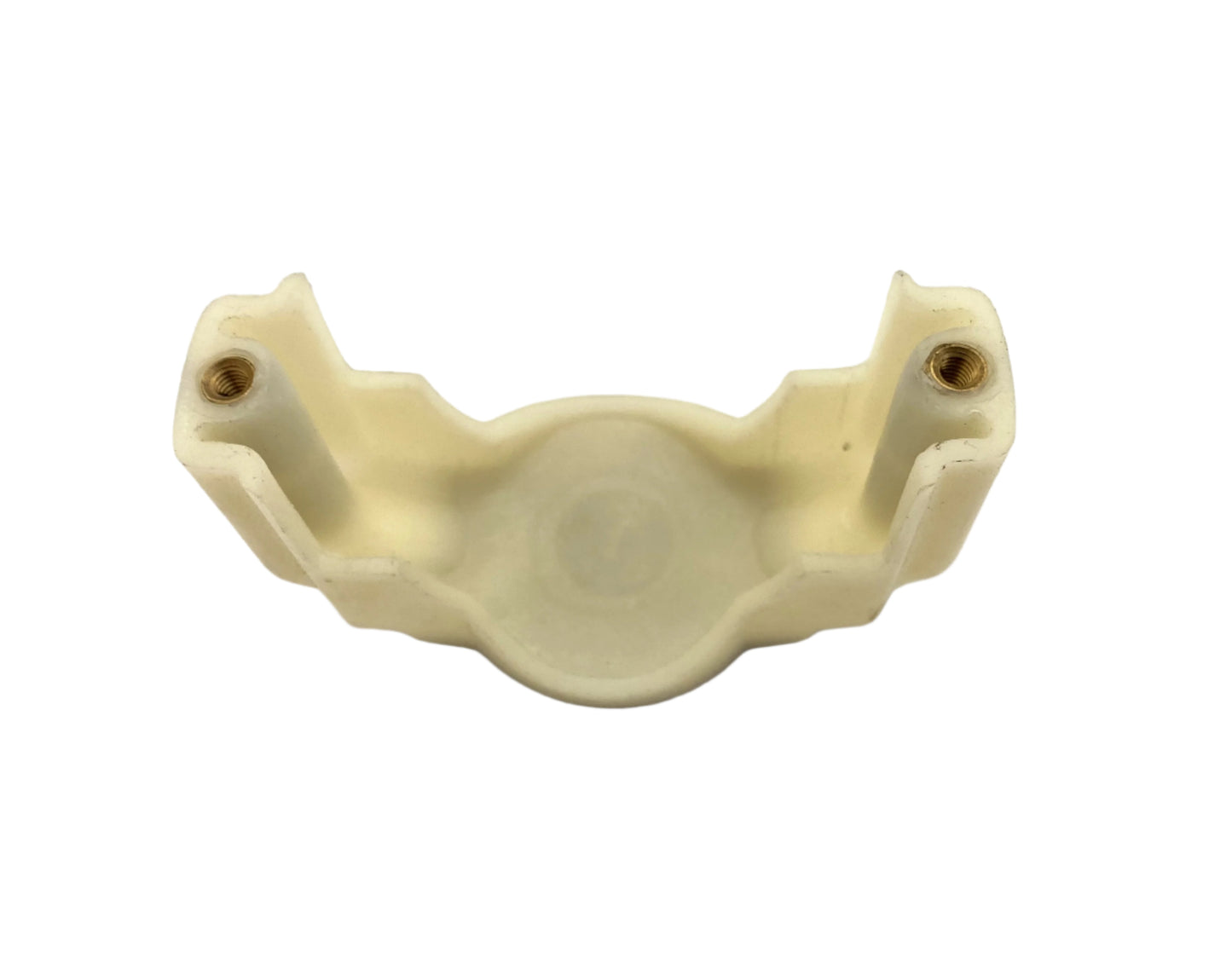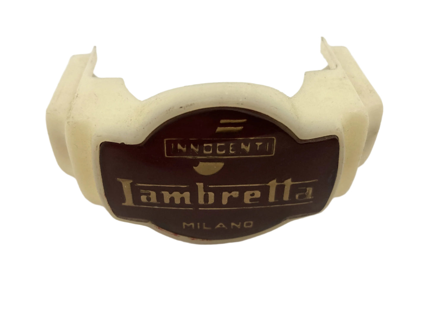 Lambretta E and F model front steering mounted badge. White plastic and red badge as original.
