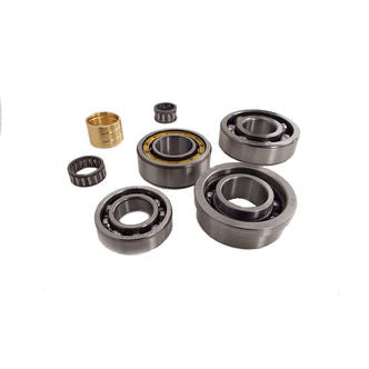 Brass caged NU2205 flywheel bearing, grooved clutch bush, all needle bearings, 6004 end plate bearing, rear hub bearing & 6305 drive side bearing.