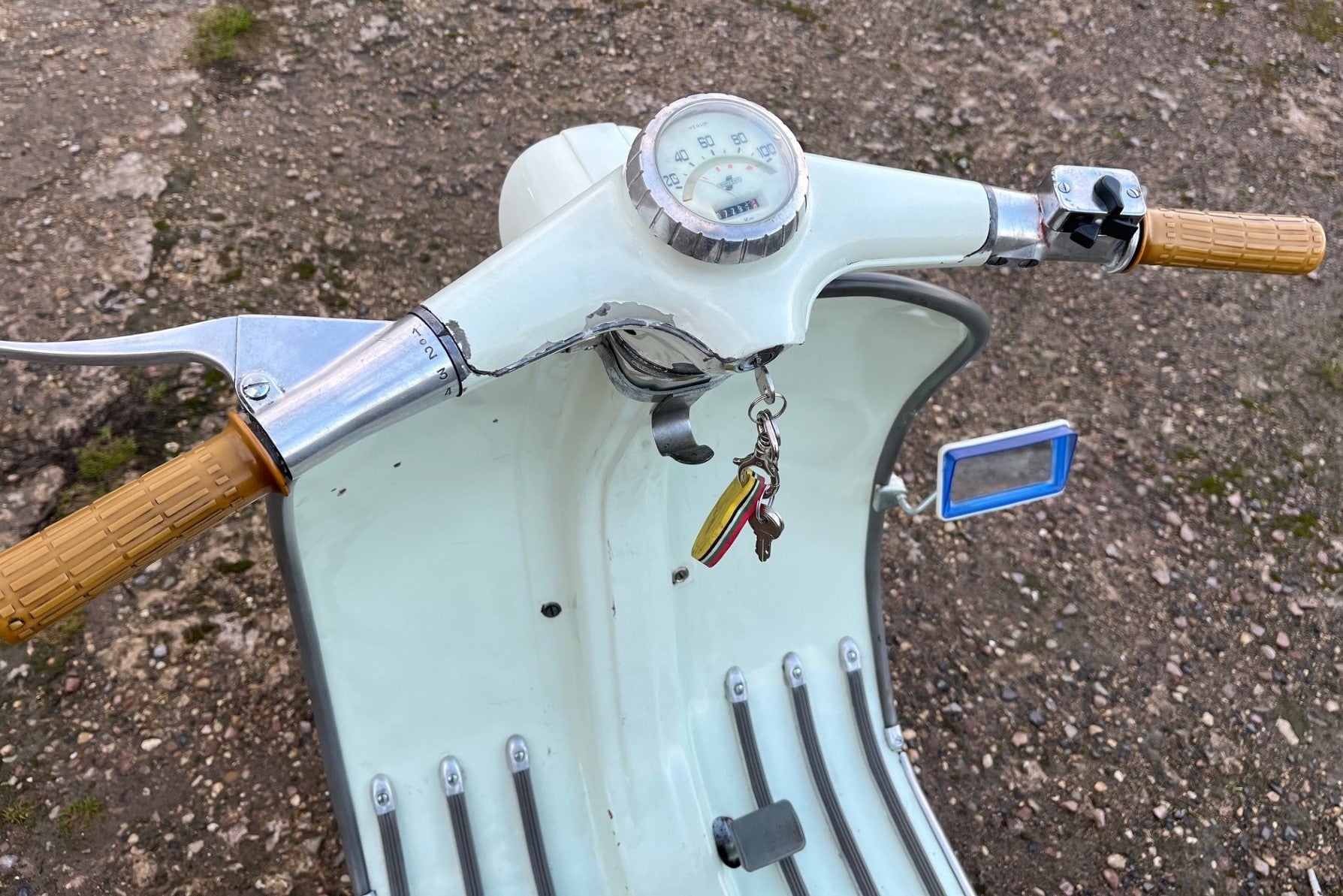 Wow what a package ! If you are looking for a bargain disguised as a period Lambretta scooter look no more. We added up the cost of all the extras and engine work on this super desirable patina laden series one "breather" and it was well in excess of £10K. The list is comprehensive. From the genuine lightning flashes and floor extensions to the Mugello powered Innocenti SX200 motor this scooter has class, mechanical excellence and style. Innocenti factory disc brake and TV1 speedometer bezel just layer after layer of lovely things! Come and take advantage of others hard graft!