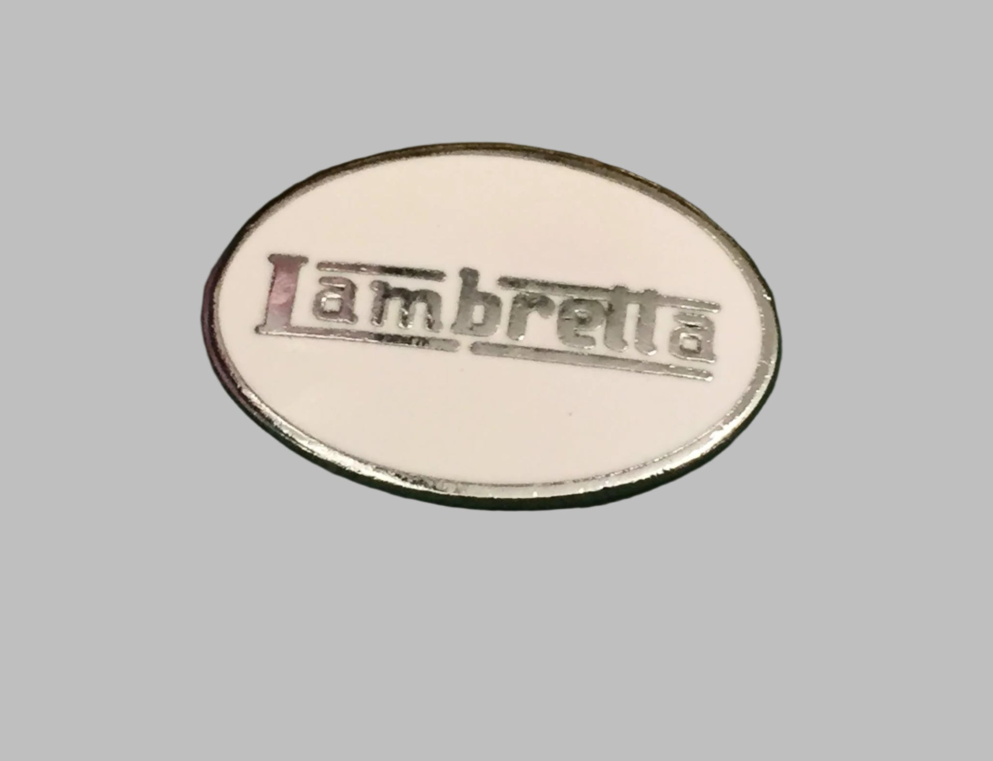 Lambretta enamel lapel pin badge in white (also available in red, green, black and pale blue).