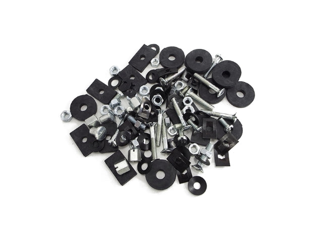 All the screws, nuts, washers and rubbers for one scooter floor board area.