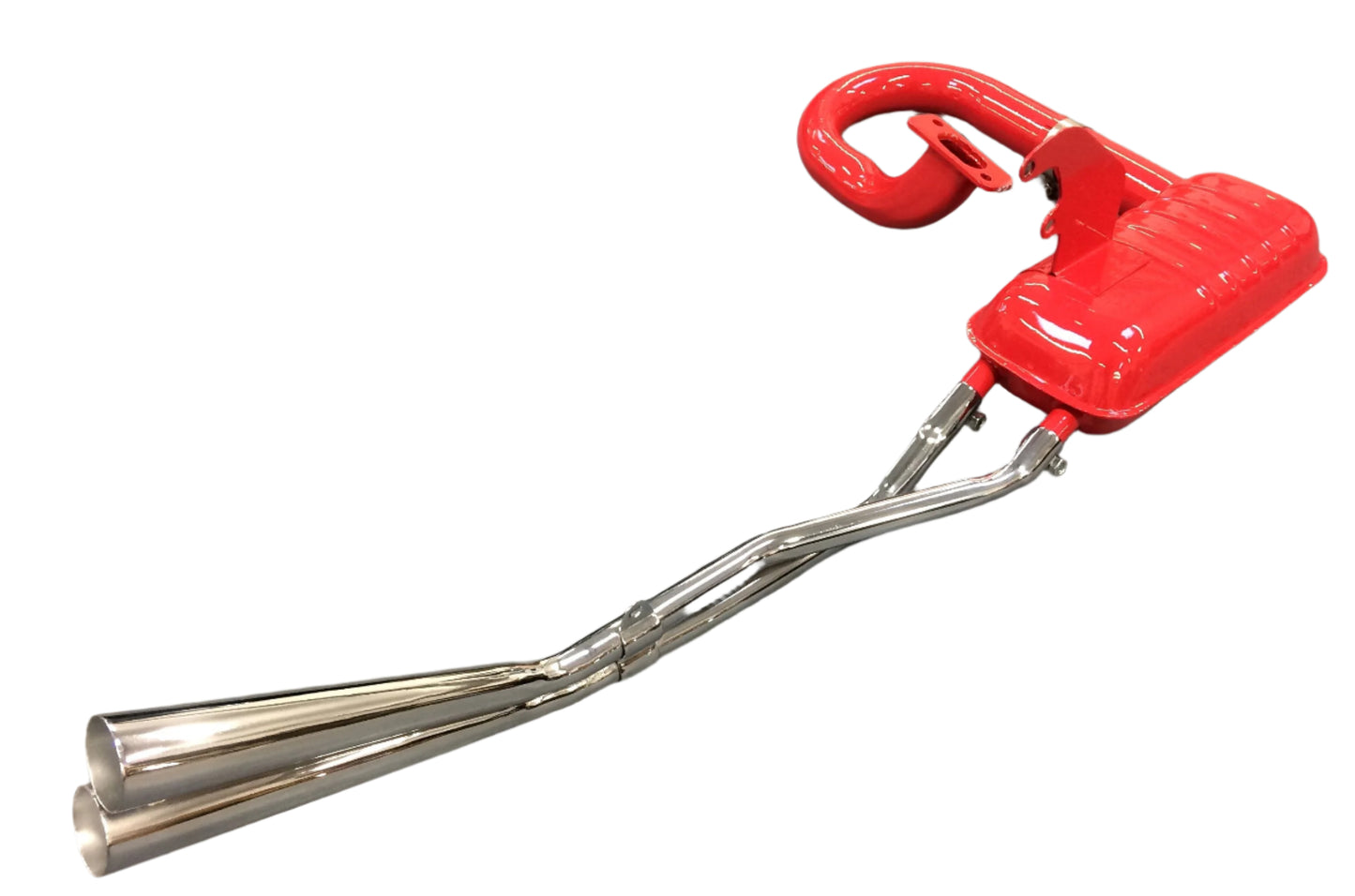 "These red and chrome "sports" exhausts are great- like the sixties originals but with bigger 42mm downpipe they actually work well!"