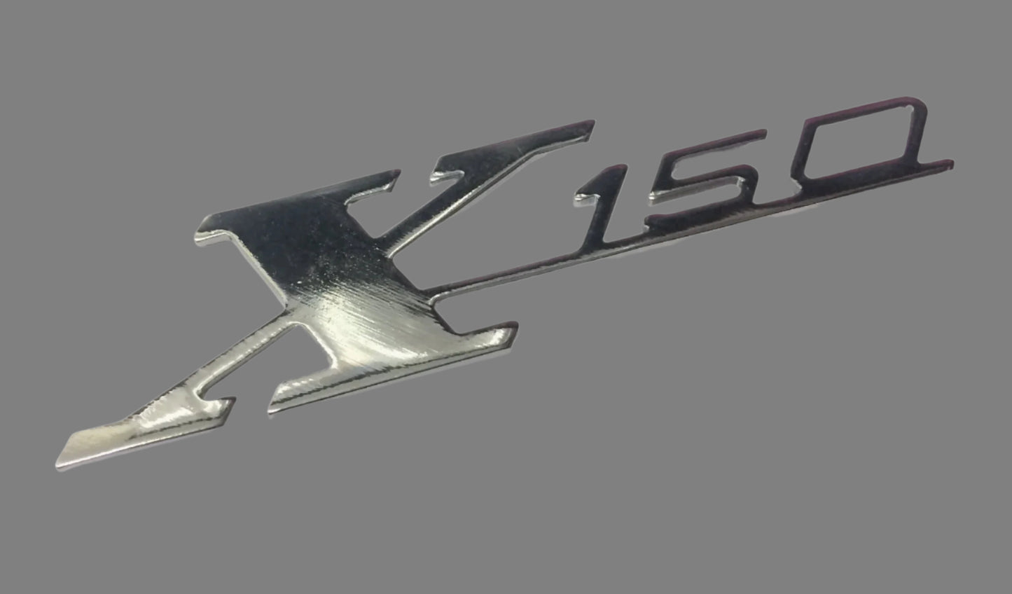 Lovely quality chromed Lambretta "X150" legshield badge.
