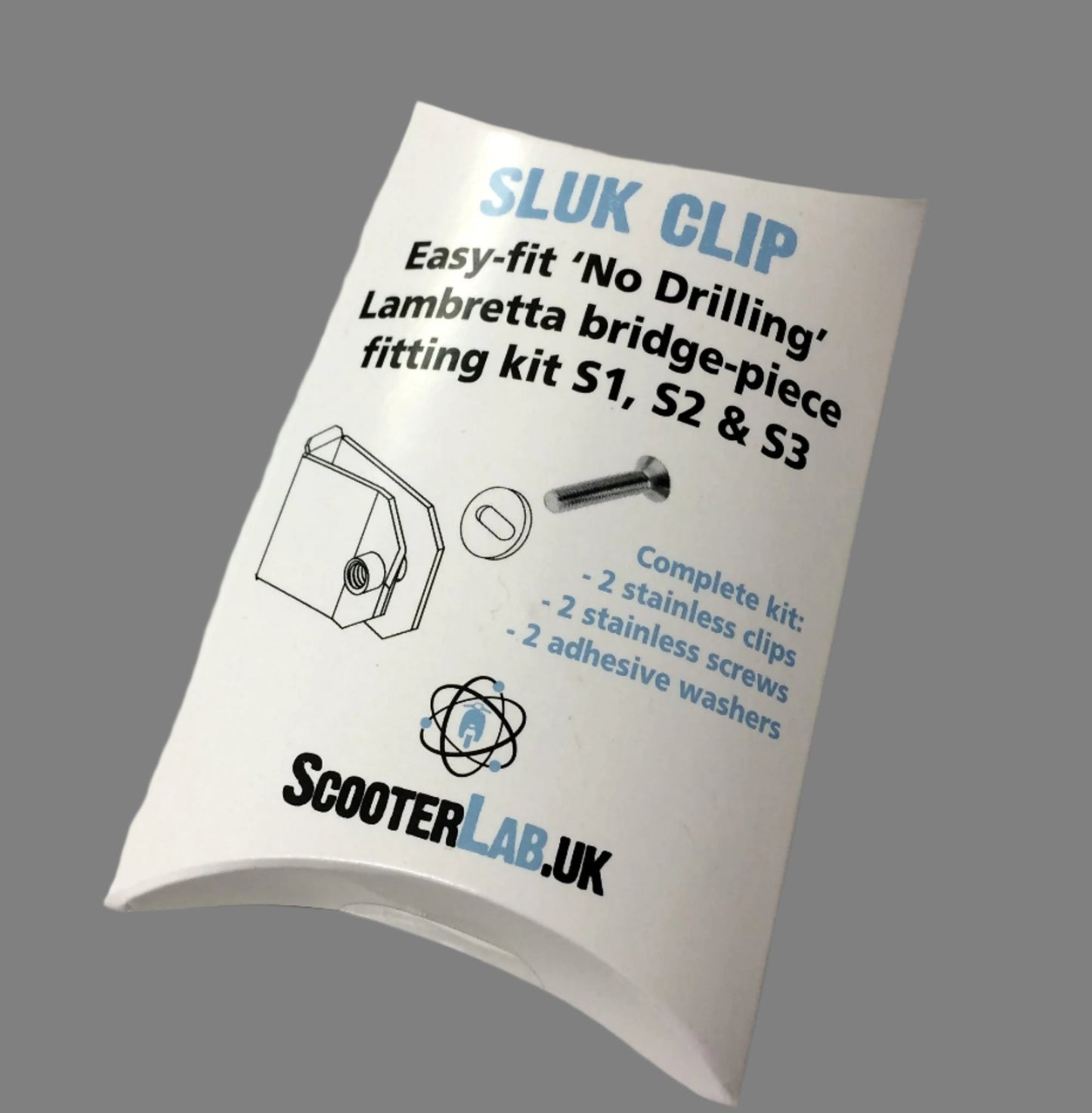 This kit contains 2 x stainless steel captive fixing plate, 5mm Counsunk/raised screws and self adhesive anti vibration rubber pads all cleverly designed and especially produced for your Lambretta.