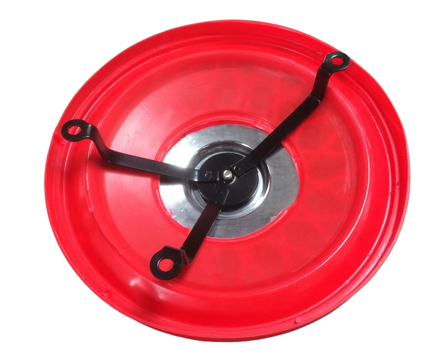 Black backing disc, three leg bracket, spinner and spoke disc included