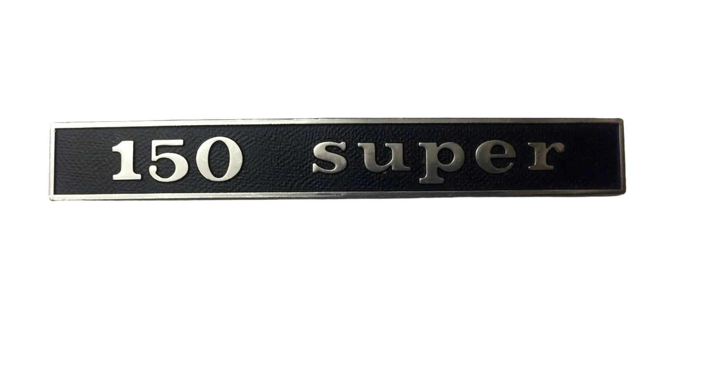 Vespa 150 Super Italian rear frame badge in aluminium.