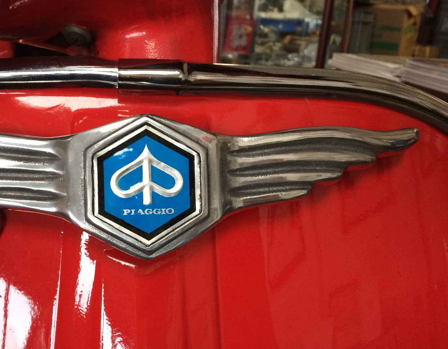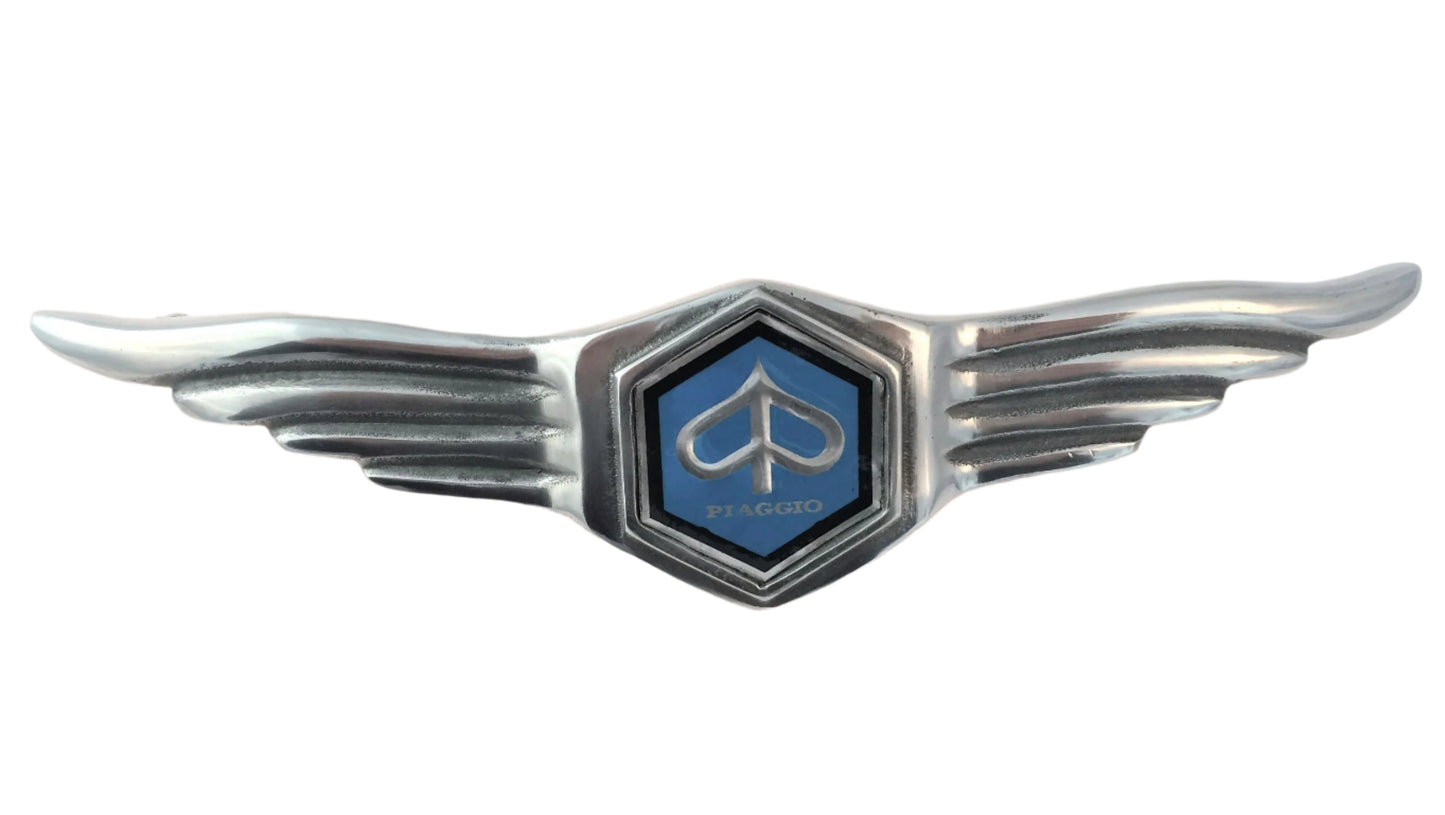 Vespa "WINGS" legshield embellisher Polished Cast alloy reproduction with diamond shape Piaggio badge